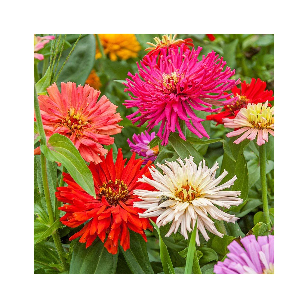 Rychle rostoucí vzpřímená letnička. Ideální pro záhonové výsadby i k řezu. Životnost květů ve váze je 8 až 10 dní. Pěstitelsky nenáročná, umísťujeme ji do slunných poloh na výživné půdy. Odkvetlé květy odstraňujeme. Směs obřích kaktusových nebo dvojitých chryzantémových květů, výška 70 cm.