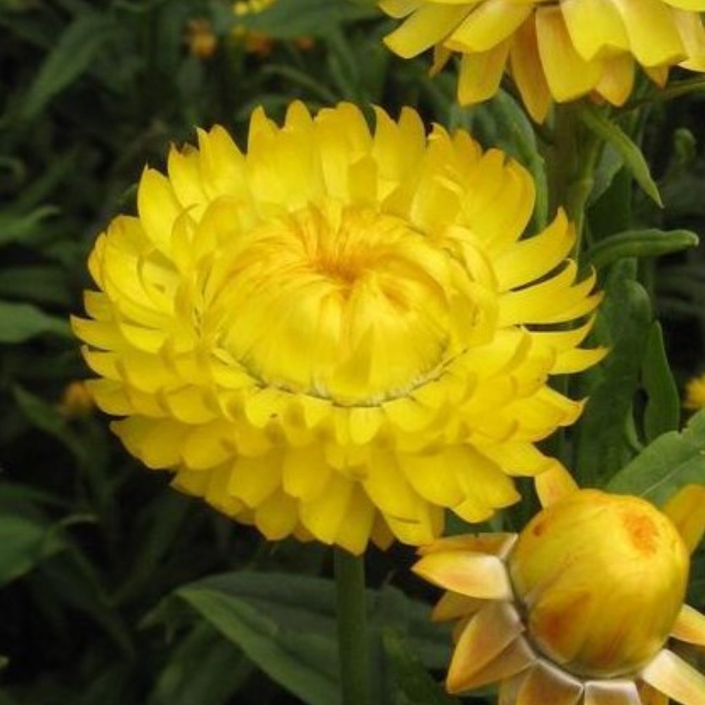 Popis: Slaměnka žlutá je letnička, která dorůstá až do 110 cm. Květy se používají především na sušení. Sklízíme je v poupěti před otevřením zákrovu. Slaměnka je vhodná i na záhony a k řezu čerstvých květů. Má ráda slunné a před větrem chráněné plochy.